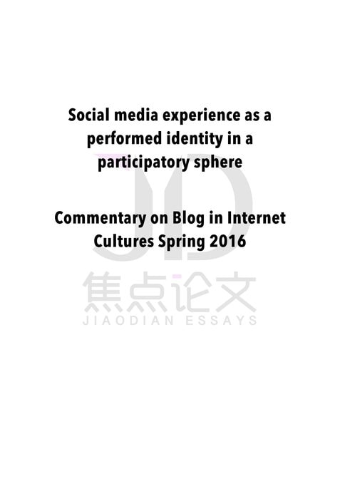 Social Media Experience as a Performed Identity